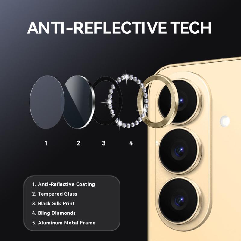 Add sparkle and protection to your Samsung Galaxy S26 with the NORTHJO Camera Lens Protector. Designed with shimmering rhinestones and precision-cut tempered glass, it keeps your camera lens safe from scratches, dust, and impact while adding a touch of elegance and luxury.