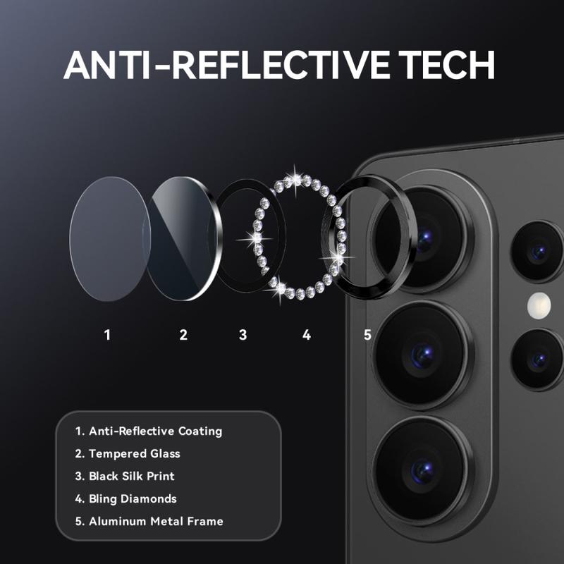 Add sparkle and protection to your Samsung Galaxy S26 Ultra with the NORTHJO Camera Lens Protector. Designed with shimmering rhinestones and precision-cut tempered glass, it keeps your camera lens safe from scratches, dust, and impact while adding a touch of elegance and luxury.