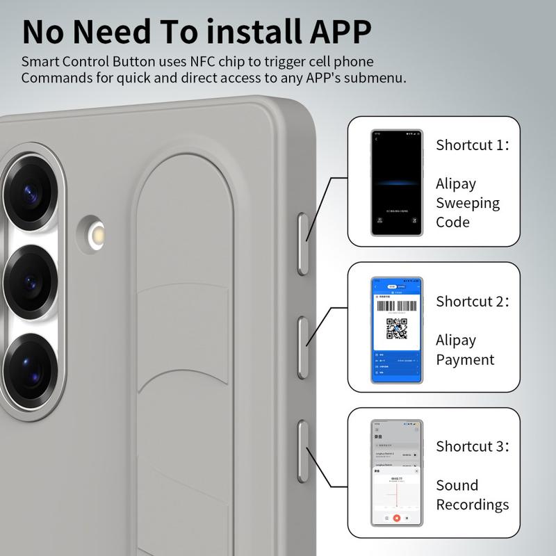 Equipped with three intelligent NFC-enabled buttons, this smart hybrid case lets you set up quick access to apps like Camera, Flashlight, or Screenshot with a single press. No charging, no extra apps – just simple, instant functionality.