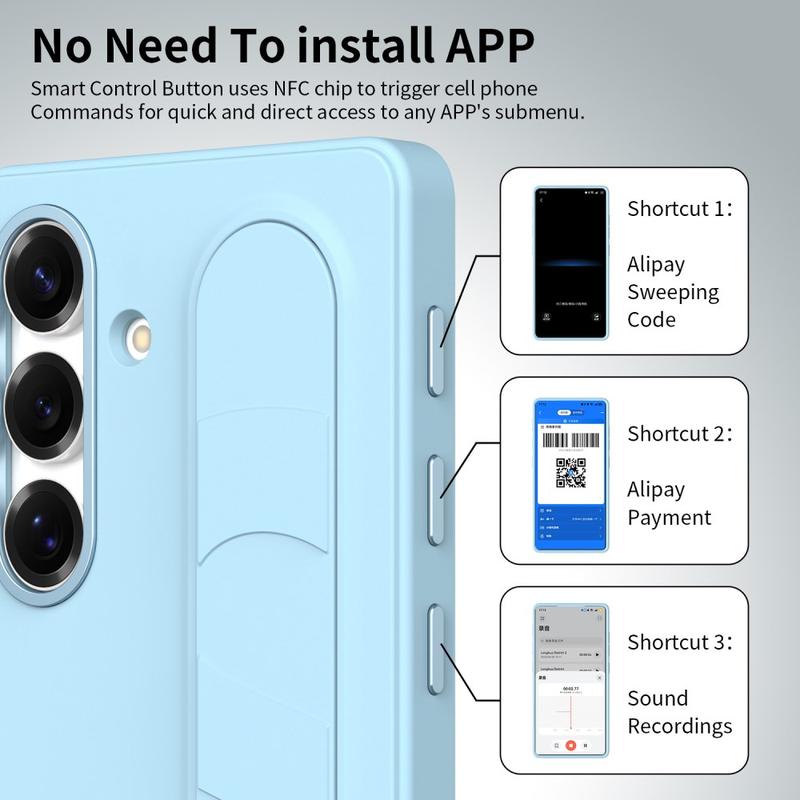 Equipped with three intelligent NFC-enabled buttons, this smart hybrid case lets you set up quick access to apps like Camera, Flashlight, or Screenshot with a single press. No charging, no extra apps – just simple, instant functionality.