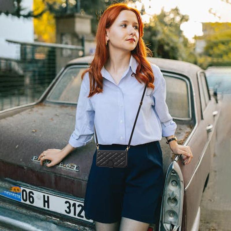 Protect your Samsung Galaxy S26+ with this luxurious quilted wallet case. Constructed with TPU material coated with PU leather, this case is scratch-resistant and anti-fingerprint, keeping your phone looking stylish and sleek. The stitching line forms a rhombus grid pattern, adding a fashionable and beautiful touch to the case. The raised edge of the camera and screen offers effective protection against scratches, while the precise cutouts provide full access to all buttons, ports, and other features. The wallet design allows for easy storage of essential cards and cash. With added protection against scratches, impact, drops, and daily damage, this case also comes with a shoulder strap and wrist strap for added convenience.