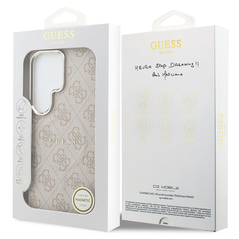 Upgrade your everyday look and protect your phone with the Guess 4G Gold Frame MagSafe case for Samsung Galaxy S26 Ultra. Designed to match both your style and your routine, this slim back cover combines a premium fashion finish with reliable daily protection. The lightweight polyurethane build feels comfortable in hand, while the grippy surface helps reduce slipping. With MagSafe support, you can keep using wireless charging and MagSafe accessories without removing the case.