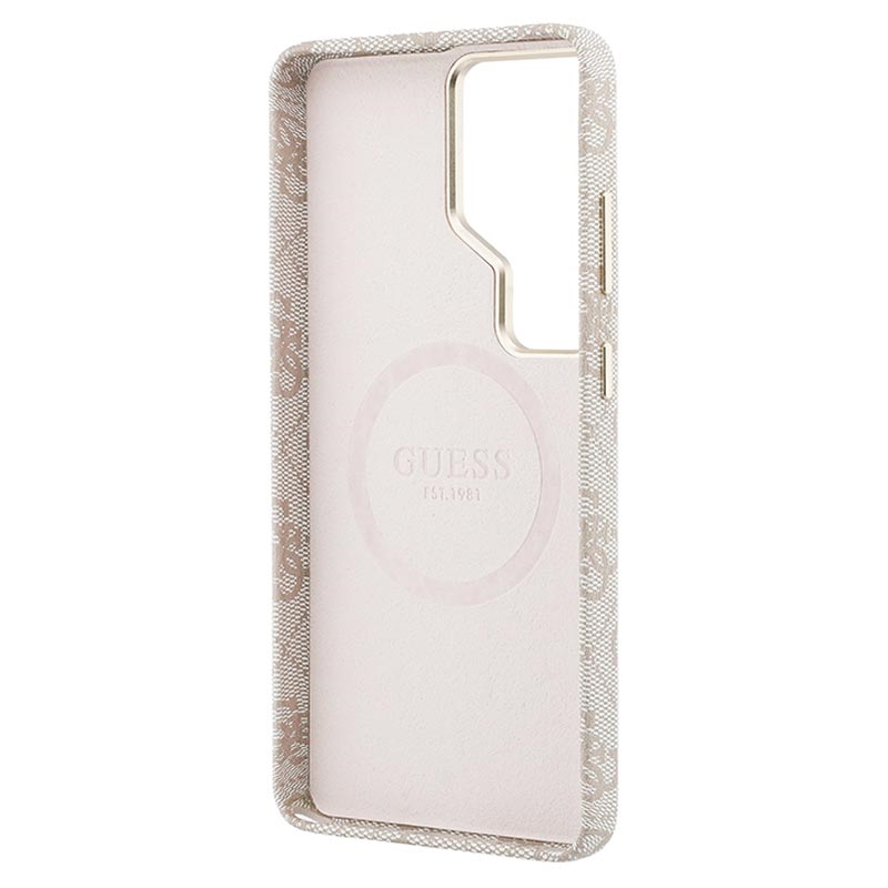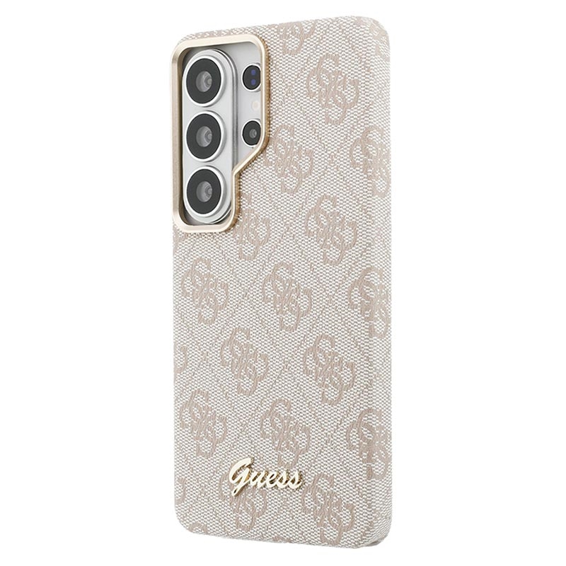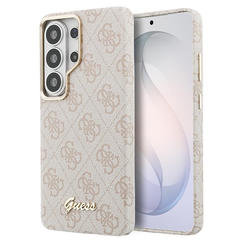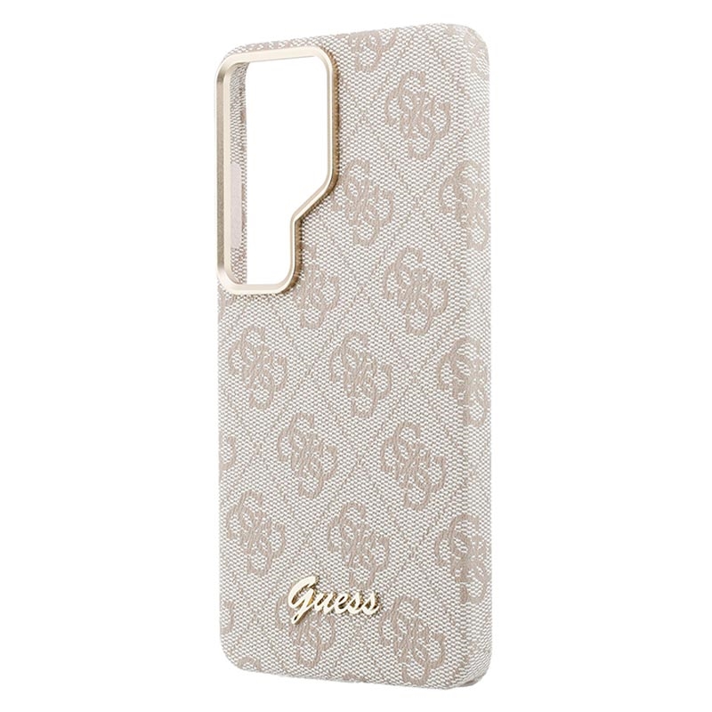 Give your Samsung Galaxy S26 Ultra a premium fashion look with the Guess PU 4G Script Metal Logo Magnetic Case. The signature 4G pattern and gold-tone Guess metal logo create an elegant, high-end finish, while the lightweight PC construction with polyutethane coating delivers everyday protection and a comfortable, secure grip. An integrated magnet makes it easy to use with magnetic phone holders without adding bulk.