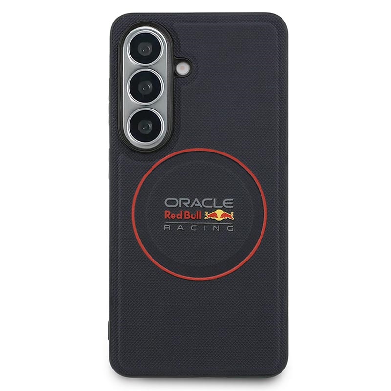 Bring racing energy to your everyday carry with the Oracle Red Bull Racing PU Meshed Red Ring magnetic case for Samsung Galaxy S26. Inspired by the speed-focused world of motorsport, this premium case combines a protective PC and TPU structure with an polyurethane surface for a bold look and comfortable grip. The distinctive red ring and meshed styling deliver standout design, while the integrated magnetic function makes it easy to use with magnetic holders, for example in the car.
