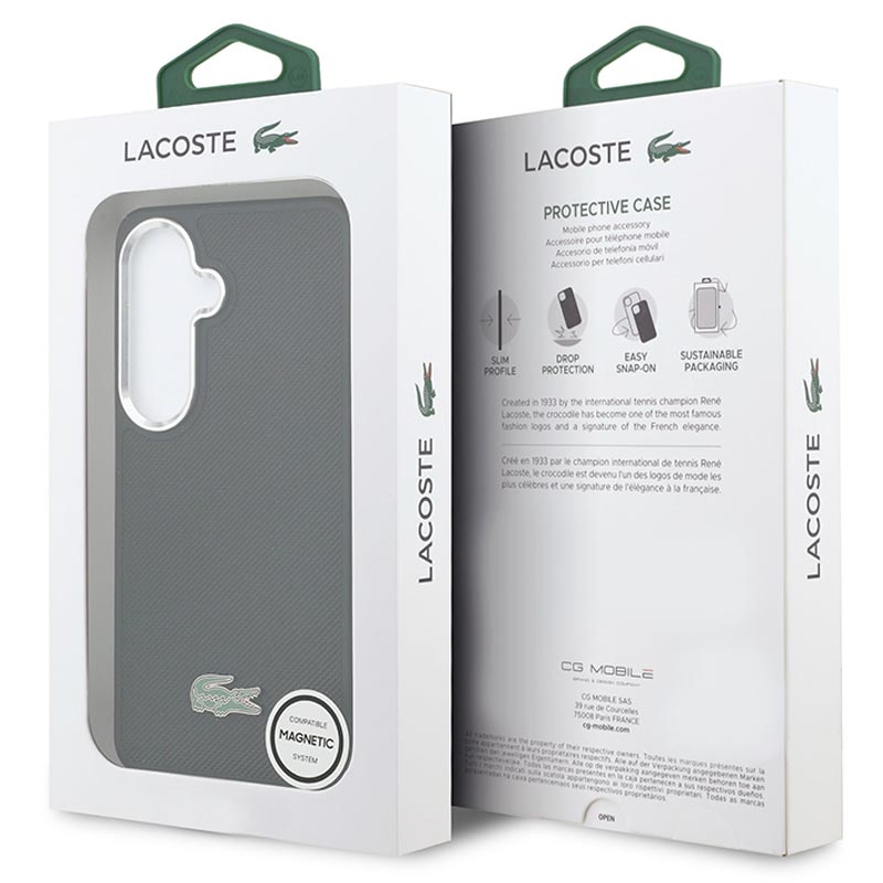 The Lacoste Iconic Petit Pique MagSafe case for Samsung Galaxy S26+ combines timeless Lacoste design with practical everyday protection. Made from lightweight, durable PVC with a soft-touch finish and a microfiber-lined interior, it offers a secure grip and comfortable handling while helping protect your phone from daily wear. Full MagSafe compatibility ensures effortless wireless charging and seamless use with magnetic accessories, all wrapped in a clean, elegant look highlighted by the iconic metal crocodile logo.