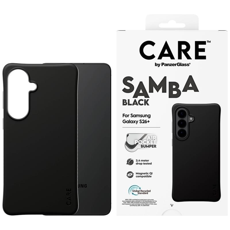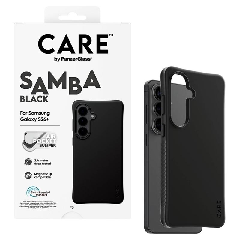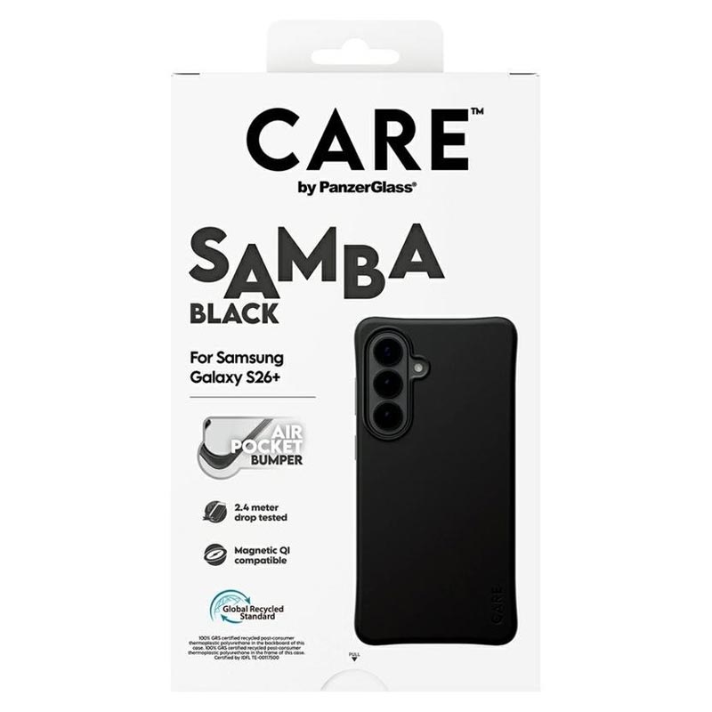 Give your Samsung Galaxy S26+ a stylish upgrade while keeping it protected day after day. The CARE by PanzerGlass Qi Samba Case is made from 100% recycled TPU and designed to handle everyday bumps, drops, and scratches without sacrificing comfort. Enhanced corner protection helps absorb impact, while the smooth-grip finish feels great in hand and makes the Samsung Galaxy S26+ easier to hold securely.