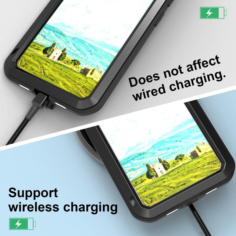 - Features: Built-in screen protector, raised edges, screw-lock design, wireless charging compatible