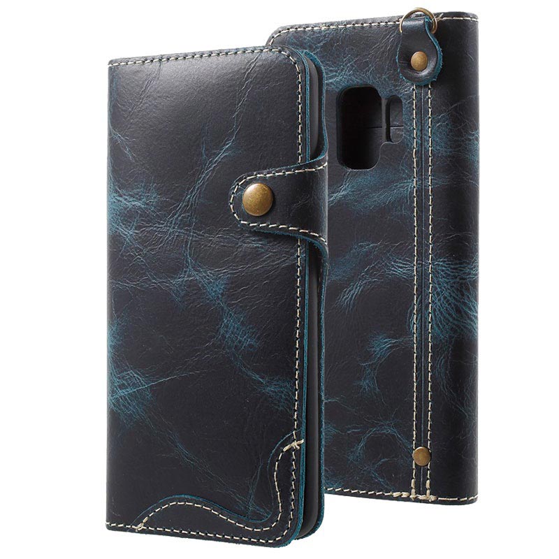 - Retro styl flip pouzdro pro Galaxy S9 vyrobený z pravé kůže