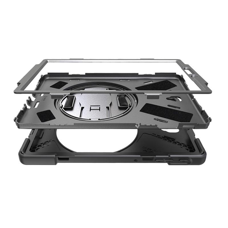 Toto drsné hybridní pouzdro chrání váš Samsung Galaxy Tab S4 10.5 před každodenním poškozením, stejně jako šoky a kapky. Integrovaný otočný stojan na otočný 360 stupňů umožňuje pohodlné použití v orientaci na portrét i krajinu. Případ také přichází s ramenním popruhem a ručním popruhem, takže můžete bezpečně nést Samsung Galaxy S4 10.5.