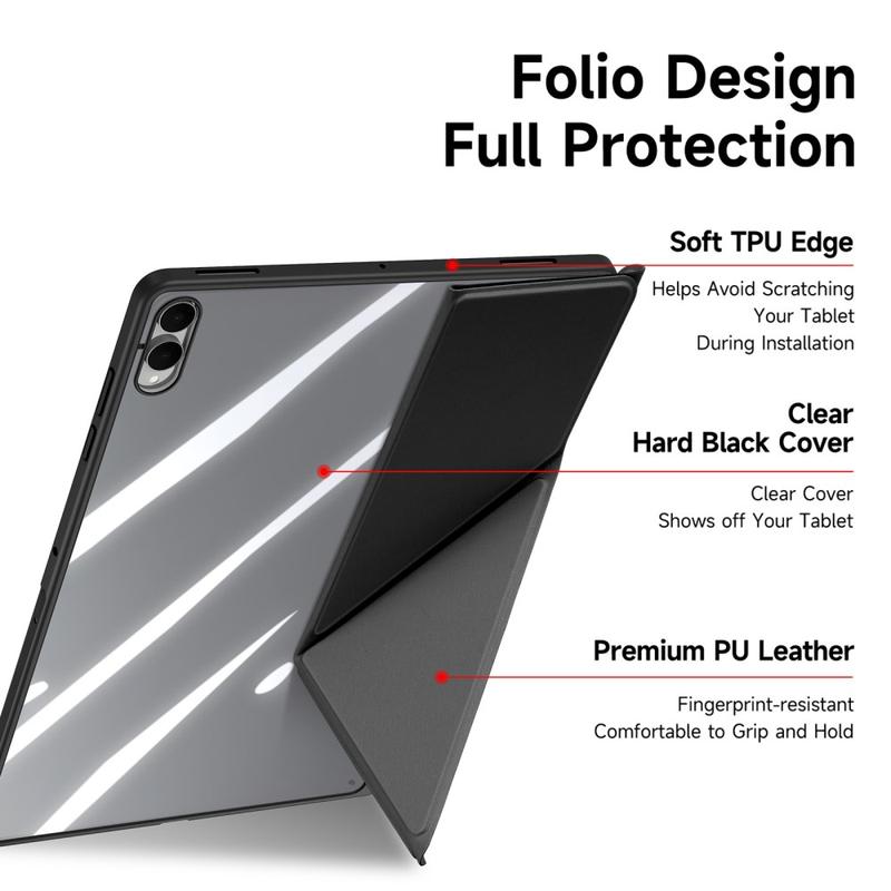 Ultra-Slim: The Slim, lightweight, and soft-touch front exterior is made of premium PU Leather, the scratch-free interior offers great protection, and the TPU frame + PC back makes your tablet more stable