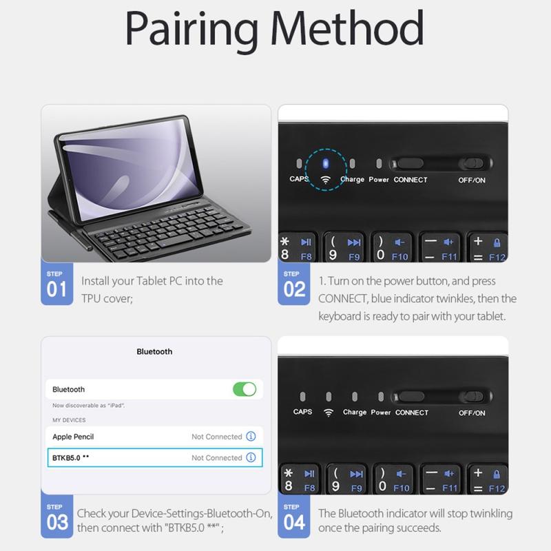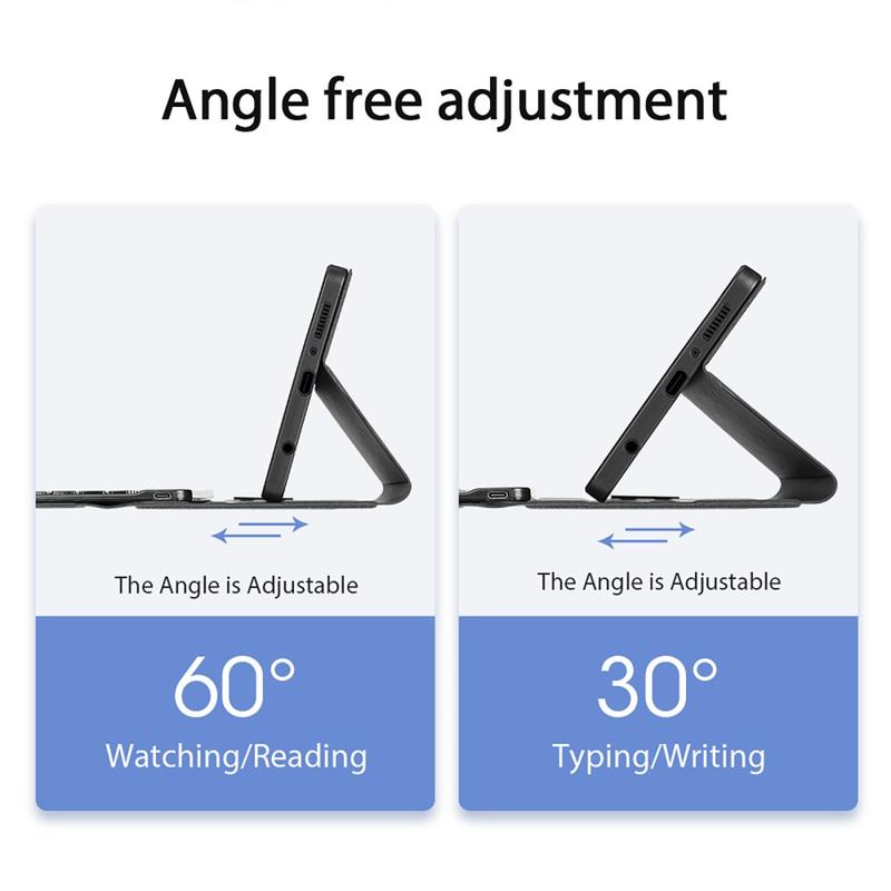 Slim a Lightweight Design vám umožní snadno přenášet tento fantastický pouzdro na klávesnici Ducis Bluetooth pro Samsung Galaxy Tab A9 všude, kde je všude. 2-in-1, klávesnice Bluetooth a pouzdro tabletu. Klávesnice je připojena s duálním magnetem a je velmi stabilní a nebude se pohybovat rychle. Užijte si hands-free zážitek s používáním pouzdra jako podpůrného stojanu v několika úhlech.