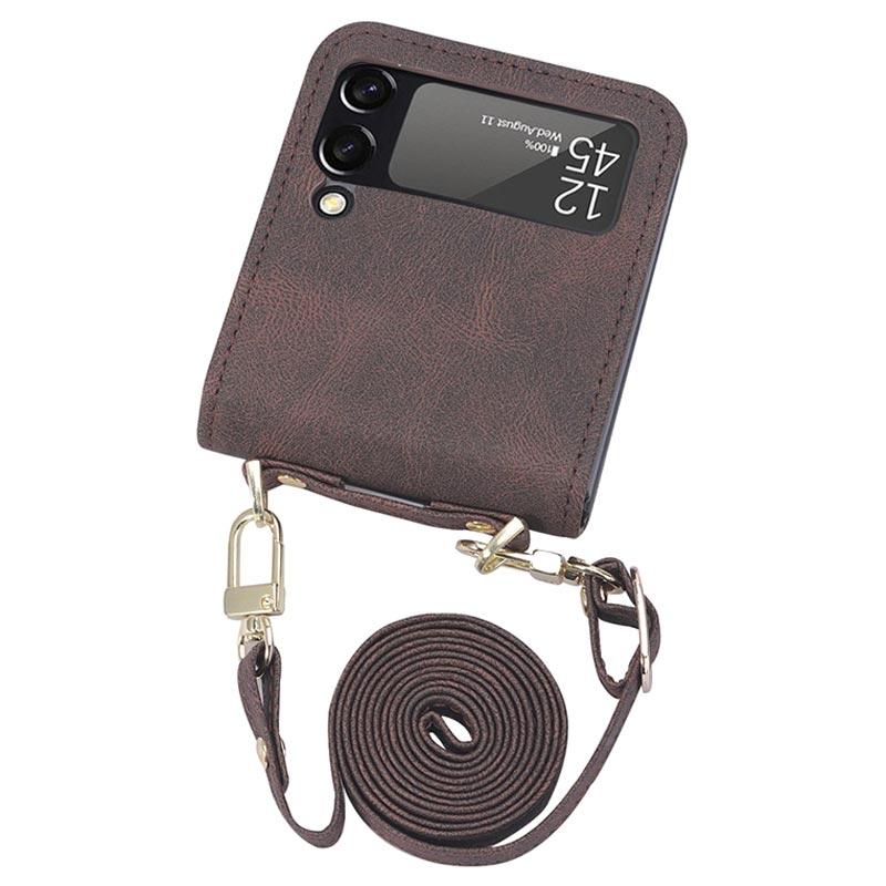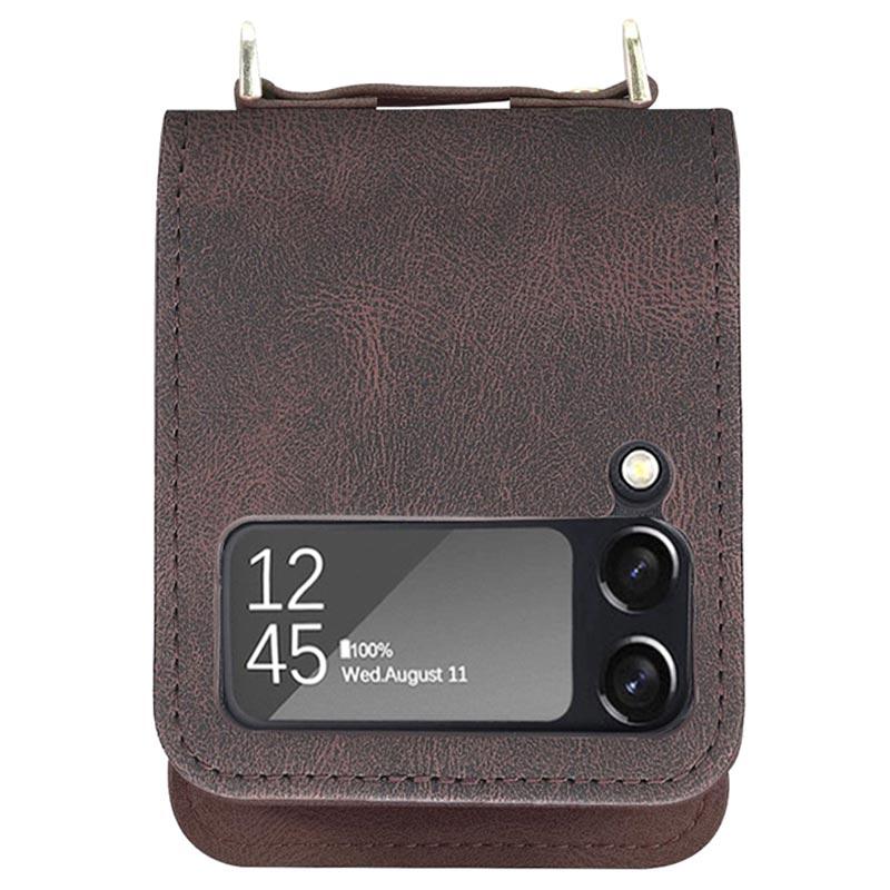 This exquisite protective case for Samsung Galaxy Z Flip4 is both practical and elegant. The sturdy plastic inner shell is coated with high-quality polyurethane to guarantee excellent all-around protection for your Samsung Galaxy Z Flip4. This elegant cover is boosted with two card pockets on the back to keep your ID or credit cards within easy reach. Upon that, it comes with an adjustable strap that allows you to free your hands and wear the case crossbody, or as a shoulder bag.