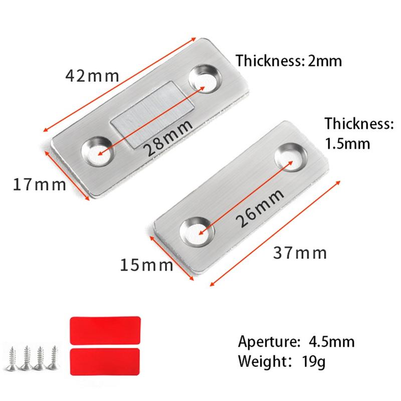 This magnet for cabinet doors is thin enough you can even ignore it but with strong enough to keep cabinet doors, drawers, cupboards, sliding doors and other doors closed
