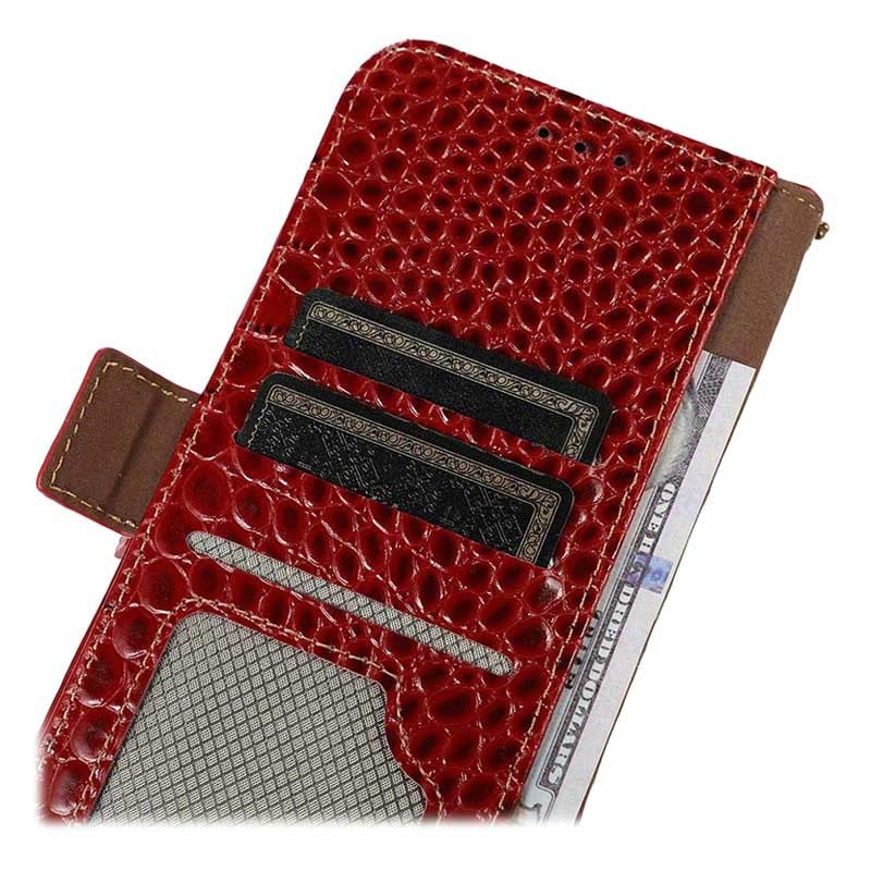 Kožená pouzdro série Crocodile série představuje vynikající styl a zároveň zajišťuje plnou ochranu vaší Samsung Galaxy S21 Fe 5G proti nečistotům, dopadům a každodenním poškození. Neuvěřitelný pouzdro peněženky obsahuje více slotů uvnitř, kde můžete bezpečně držet kreditní karty, průkazku, hotovost, dokumenty a jeden slot pro fotografie.