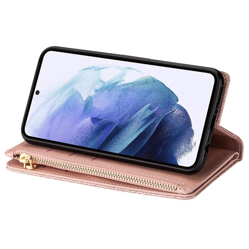 Nejelegantnější způsob, jak nést svůj Samsung Galaxy S22 5G, je chráněn tímto šumivým pouzdrem peněženky. Poskytuje vynikající všestrannou ochranu, zatímco silné magnetické uzavření udržuje všechny vaše cennosti a vaše Samsung Galaxy S22 5G zajišťuje. Pouzdro má více slotů pro karty a velkou kapsu na zip, zatímco skládací zadní část se zdvojnásobí jako stojan pro pohodlné sledování médií. Toto stylové pouzdro na peněženku pro Samsung Galaxy S22 5G přichází s praktickým šňůrou pro zvláštní bezpečnost na přeplněných místech.