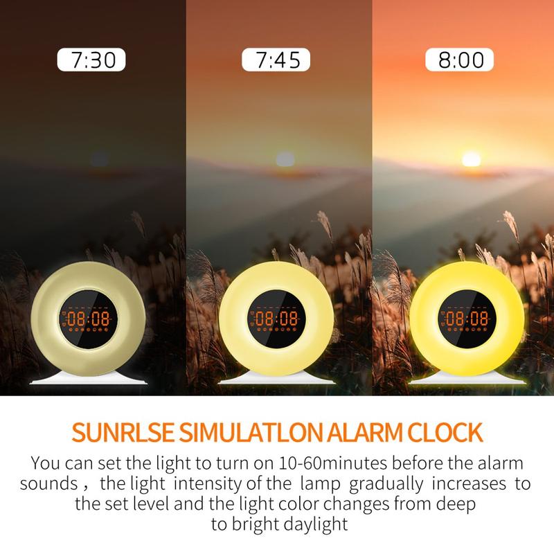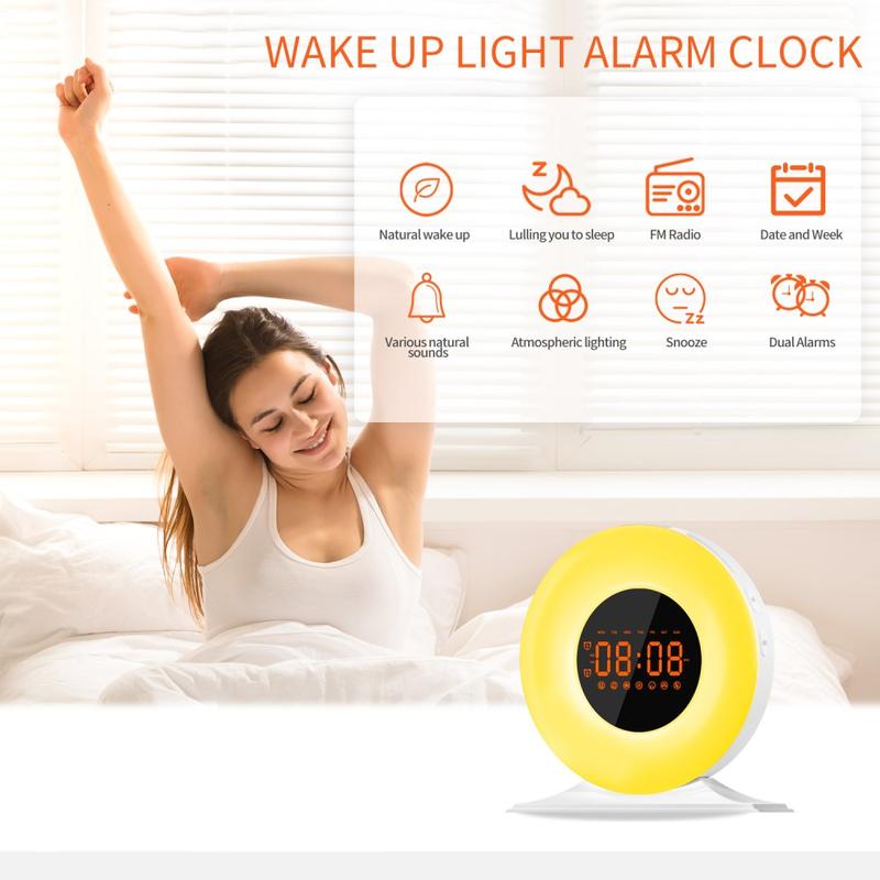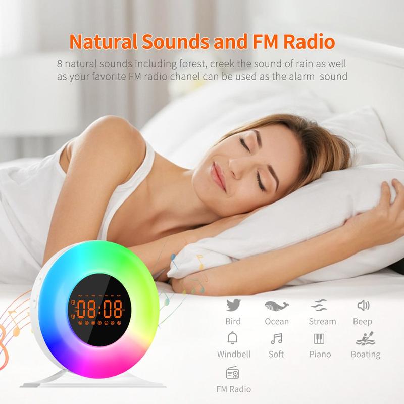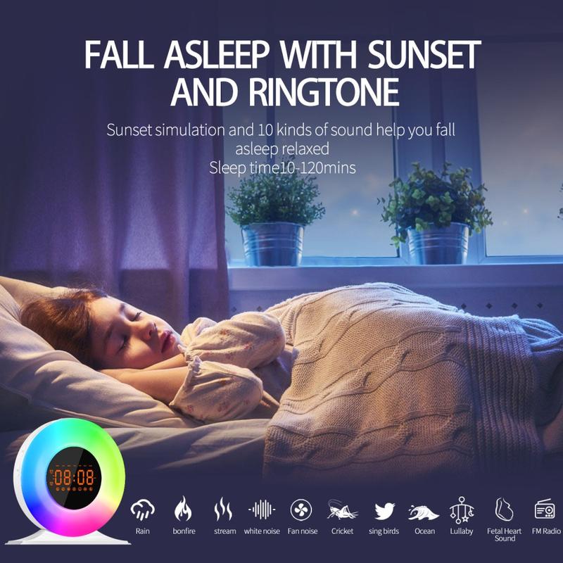 SH05 Sunrise Alarm Clock with White Noise and Night Light - FM Radio, Sleep Timer