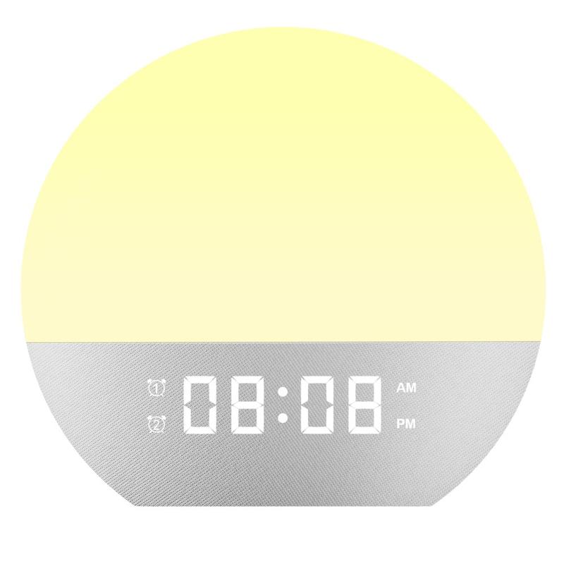 SH08 Bedside Alarm Clock with LED Light with Ambient Colours, White Noise and FM Radio