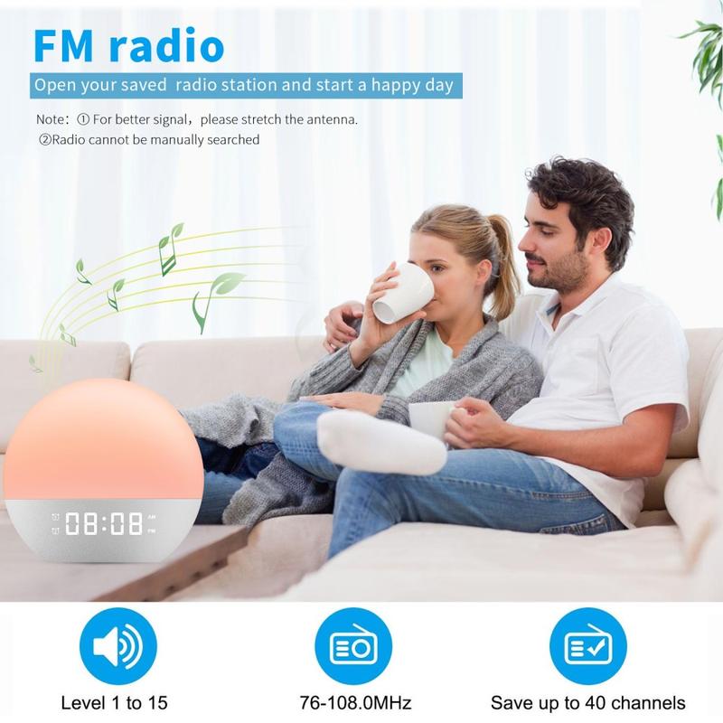 This type of bedside wake-up light has become increasingly popular because it combines several everyday essentials into one product. Instead of using a separate alarm clock, night light, sleep sound machine, and radio, you get one space-saving solution that supports a more relaxing bedroom setup.
