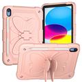 Shockproof Case for iPad 10.9 (2022) Butterfly Shape Kickstand Tablet Case Silicone + PC Protective Cover with Shoulder Strap - Pink