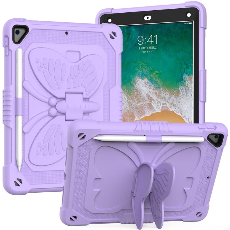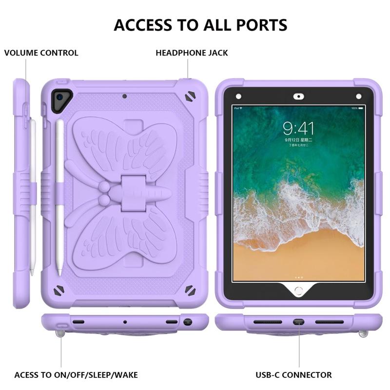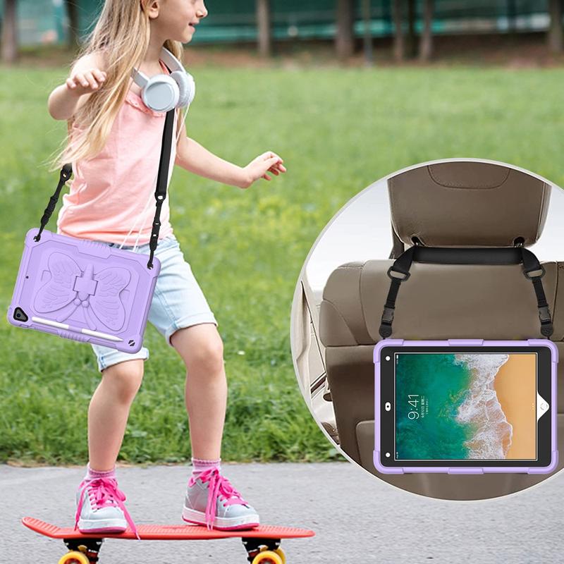 • Silikonové pouzdro na tablet ve tvaru motýla s ramenním popruhem pro iPad 9,7 palce (2018)/(2017)/iPad Air 2 - fialové