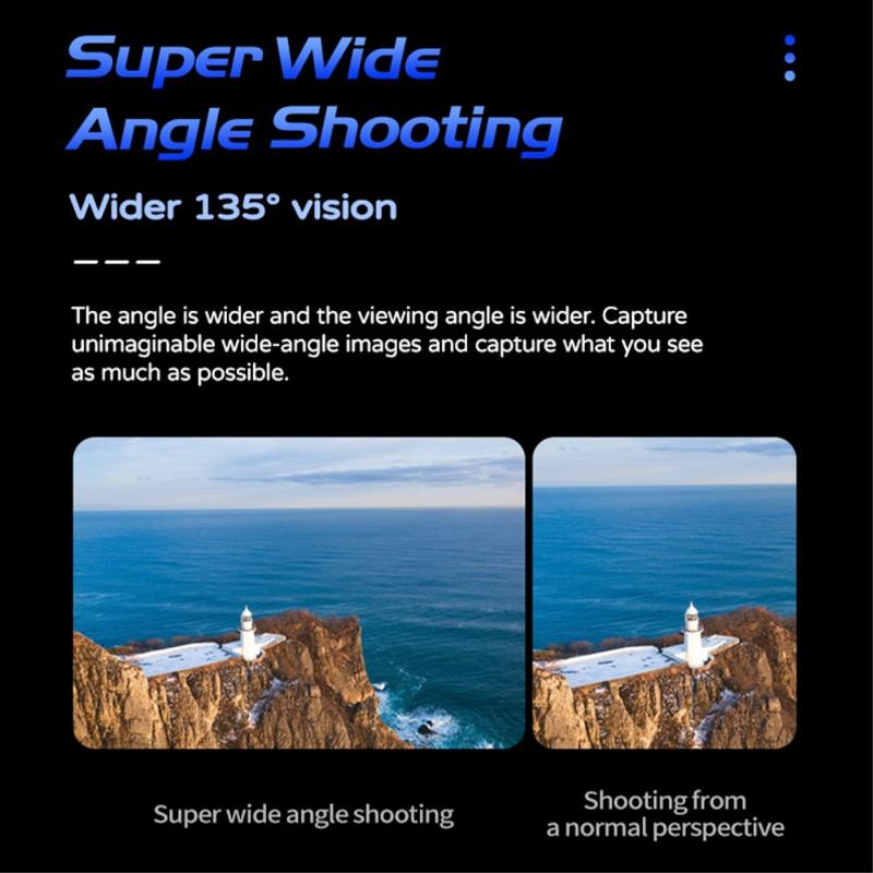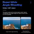 - Wide angle: 135 degree lens angle for immersive shots