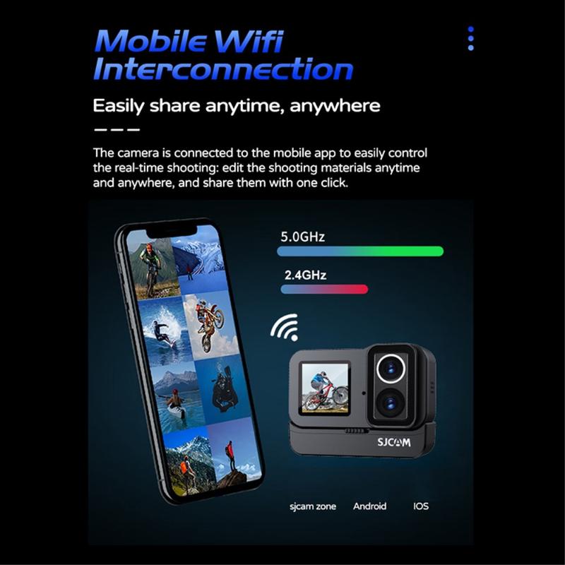 SJCAM SJ20 Dual Lens Action Camera - 4K30, Dual Screen, Night Vision Lens, 6-Axis Stabilisation, 5 m Waterproof (30 m with Case), Wi-Fi 2.4/5 GHz, USB-C