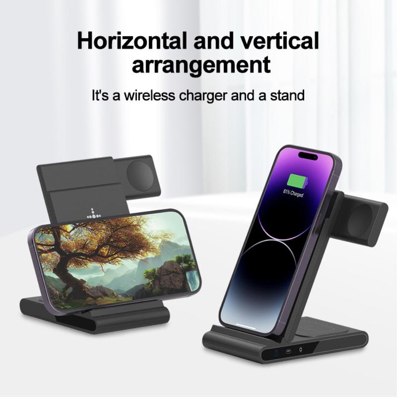 Skládací bezdrátová nabíječka X1 3 v 1 pro iPhone / iWatch / AirPods Přenosný rychlonabíjecí stojan - černý