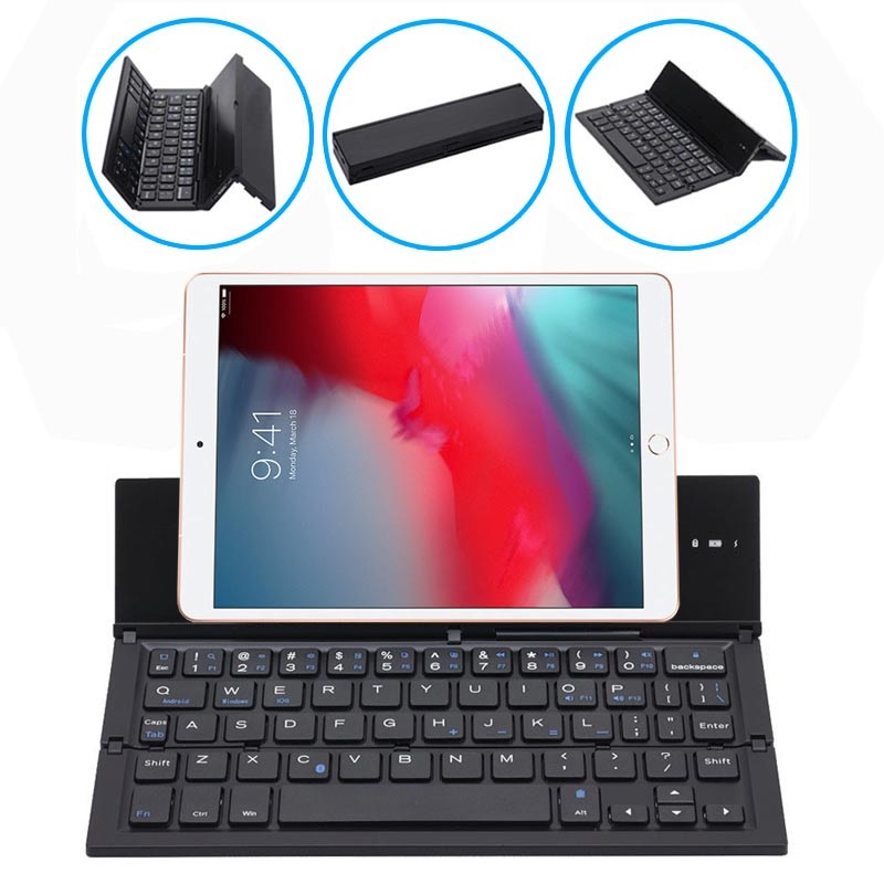 Skládací bezdrátová klávesnice a držák dekstopu pro smartphone a tablet - qwerty