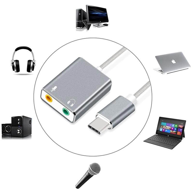 Připojte kabelové sluchátka a mikrofon k počítači typu C (USB-C) a užijte si hudbu, hry, Skype a další pomocí tohoto zvukového adaptéru. Nevyžaduje, aby žádné řidiče pracovaly s vašimi zařízeními, stačí plug & přehrávat. Odolné pouzdro z hliníkové slitiny činí tento zvukový adaptér odolný vůči malým dopadům a zároveň lehkým.