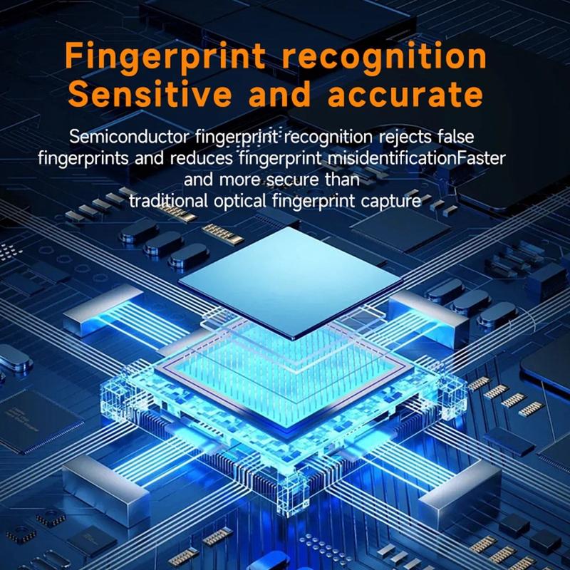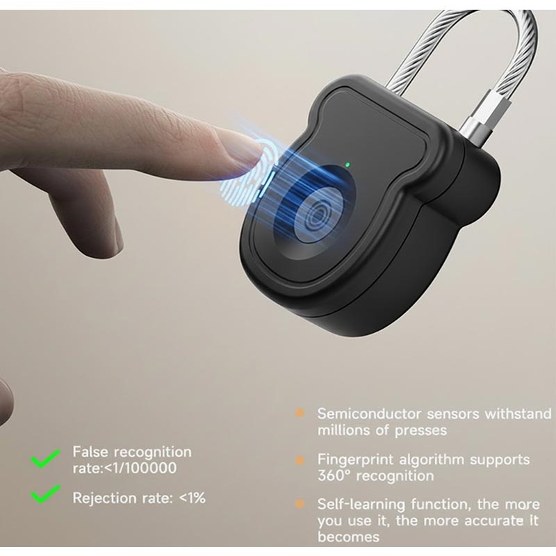 This smart padlock uses a semiconductor fingerprint sensor capable of storing up to 20 fingerprints. The self-learning algorithm improves accuracy over time, ensuring quicker and more reliable unlocking with each use.
