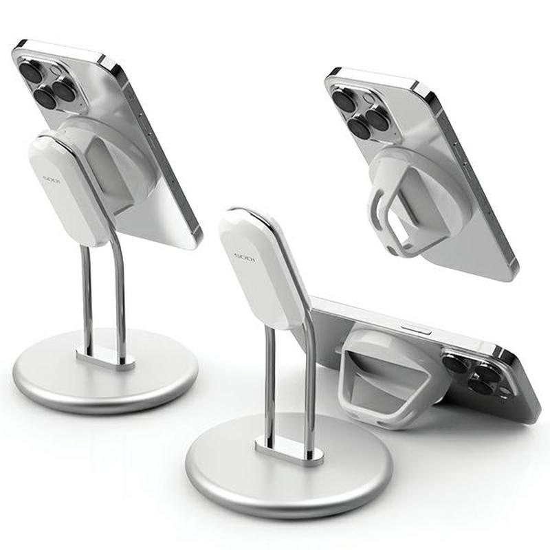 The SODI SIM300 Magnetic Phone Stand features a unique design inspired by architectural aesthetics, offering both functionality and style. Made from high-quality aluminum alloy and soft silicone pads, it provides a stable and scratch-free support for your phone. The stand's magnetic holder is detachable, allowing it to be used separately or replaced with an iPhone MagSafe wireless charger (not included).