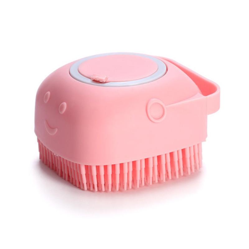 Soft Dog/Cat Bath Brush with Shampoo Dispenser - Pink