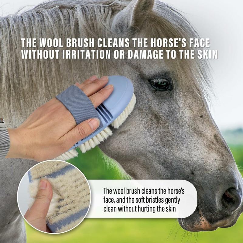 - Ultra-soft wool bristles – perfect for faces, clipped areas and horses prone to rub marks.