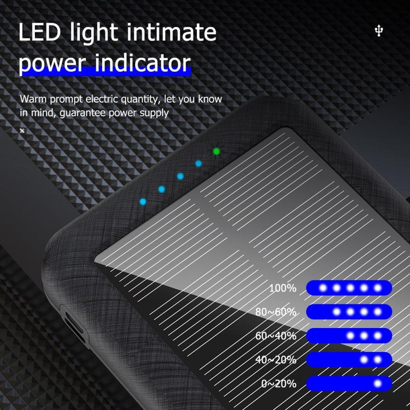 Stay connected and powered up with the 20000mAh Portable Solar Power Bank today!