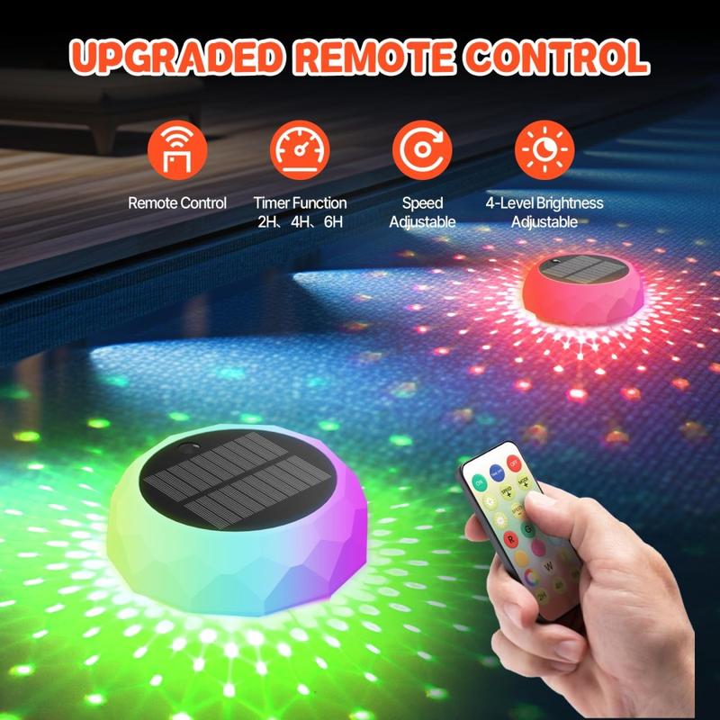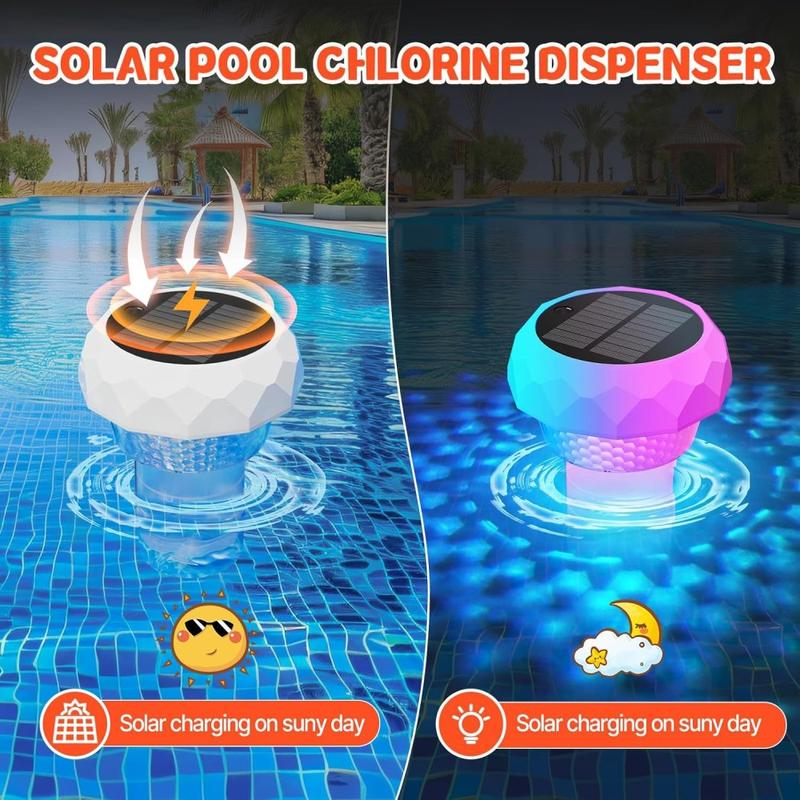 Solar-Powered Floating Pool Light with Disinfection Box and RGB LEDs - Remote-Controlled Timer Lamp, 170 × 100 mm IPX7