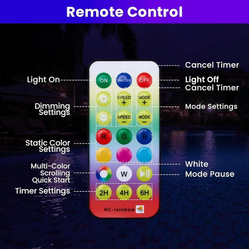 - Remote lets you change colour or shut down without entering the water