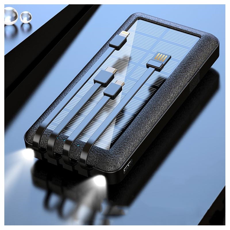 solární banka Psooo PS-159 s vestavěným Lightningem, USB-C, USB-A a MicroUSB kabelem-10000 mAh li-polymer