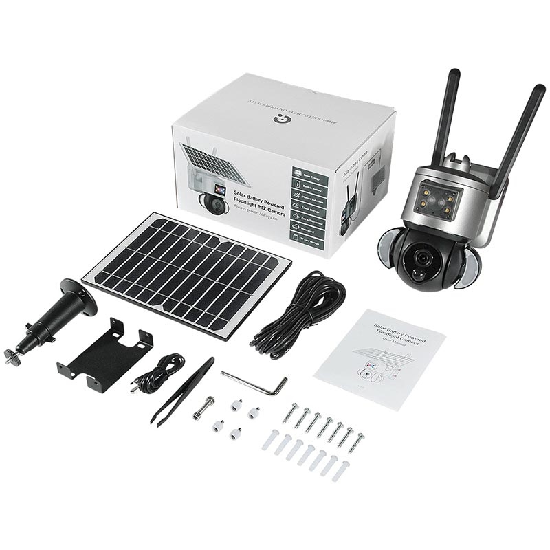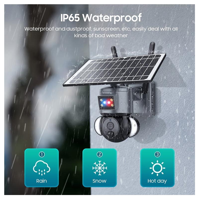 Solárně napájená sledovací PTZ kamera s funkcí alarmu, Floodlight, IR noční vidění, PIR detektor pohybu S528 – IP65, WiFi, 3MP