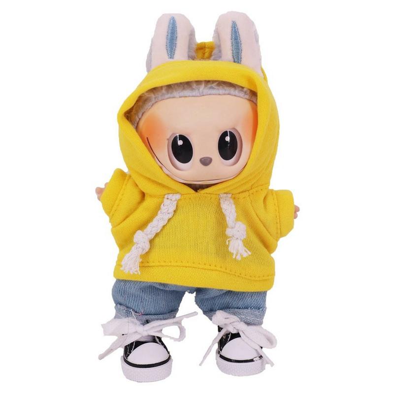 Solid-Color Hoodie for 17cm Labubu Mini Figure - Soft Cotton-Blend Hooded Top, Easy-Dress Design