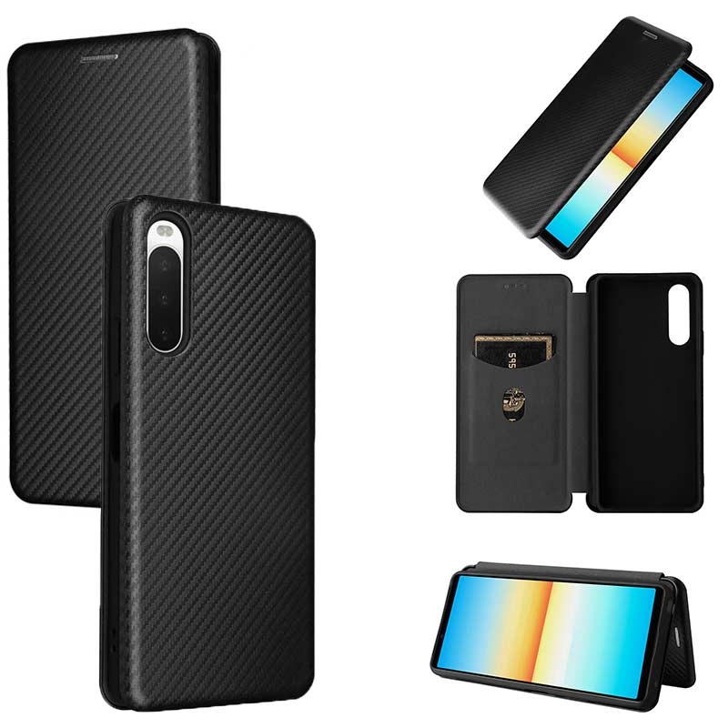 flip pouzdro s slotem pro kartu pro Sony Xperia 10 IV - uhlíkové vlákno