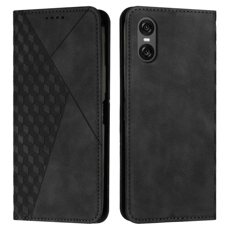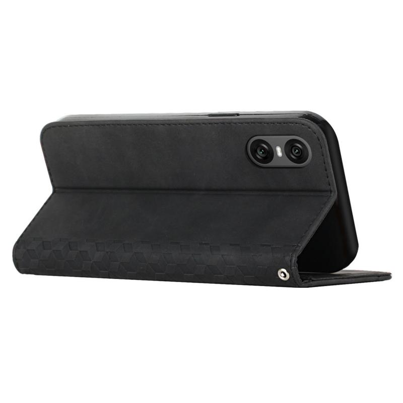 Sony Xperia 10 VI Rhombus Pattern Wallet Case with Magnetic Closure - Black