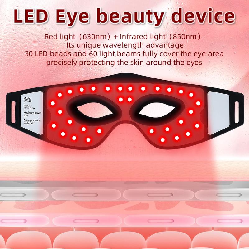 The SP-1103K LED eye beauty device is a medical-grade silicone eye mask with 30 LED beads, 630nm red light, 850nm near-infrared light, and gentle constant temperature heating. Featuring an ergonomic contour design, USB Type-C charging, and a rechargeable 400mAh battery, it is a practical skincare device for eye area care, relaxation, and everyday beauty routines.