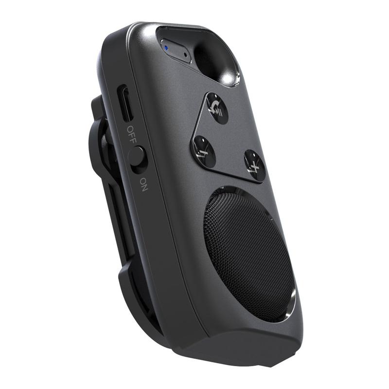 – Wearable clip-on Bluetooth speaker for hands-free audio