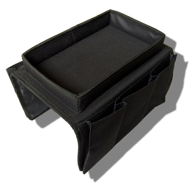 With multiple pockets and a large top tray, this organizer provides ample room for TV remotes, glasses, books, tablets, magazines, stationery, and mobile phones. Its no-installation design allows you to simply slide the pocketed end between the sofa cushion and frame for instant stability. When not in use, it folds flat for easy and space-saving storage.