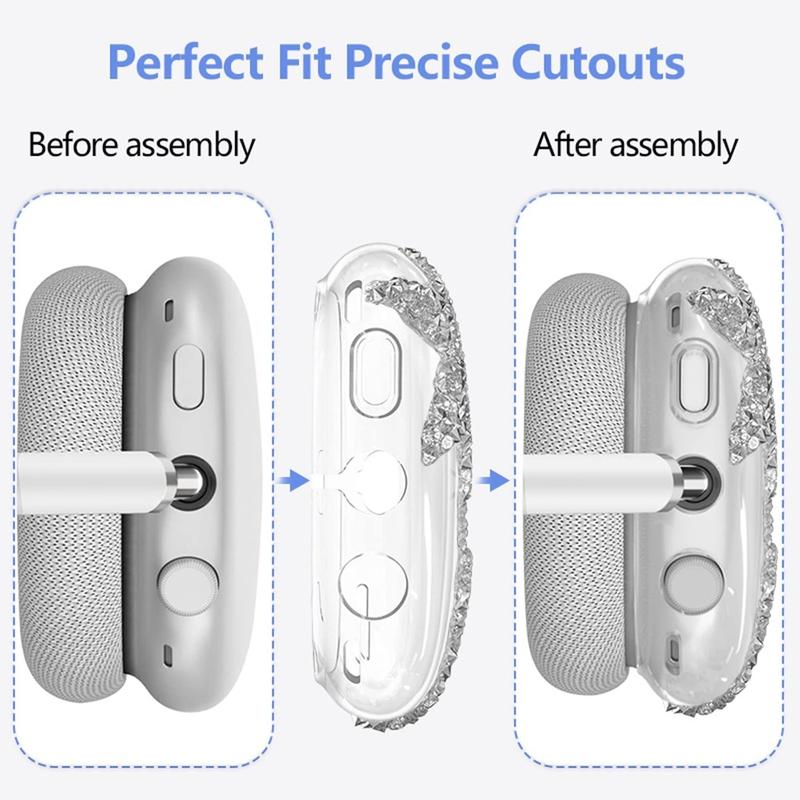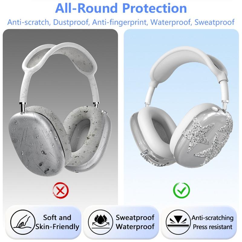 Add a dazzling layer of protection to your AirPods Max with this elegant, sparkly star design. Comprising a headband cover, earmuff sleeve, and ear cushion cover, this silicone set safeguards every key area of your headphones against scuffs and wear. Enjoy both style and functionality without compromising on comfort or sound quality.