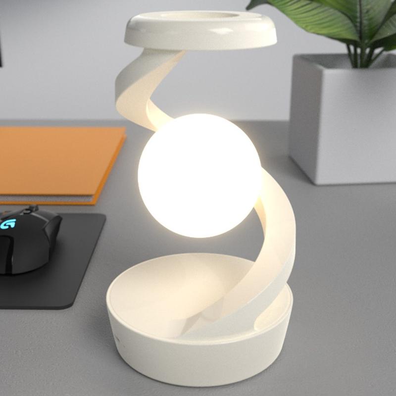 Elevate your space with the Spiral Levitation Floating Light, an innovative RGB night light with a futuristic design. Featuring a wireless charging pad for Qi-compatible devices, this sleek black lamp combines style and functionality. Perfect for modern interiors, it provides customizable ambient lighting while keeping your phone powered.