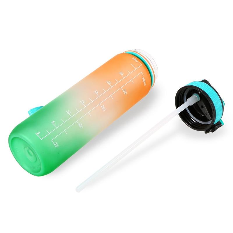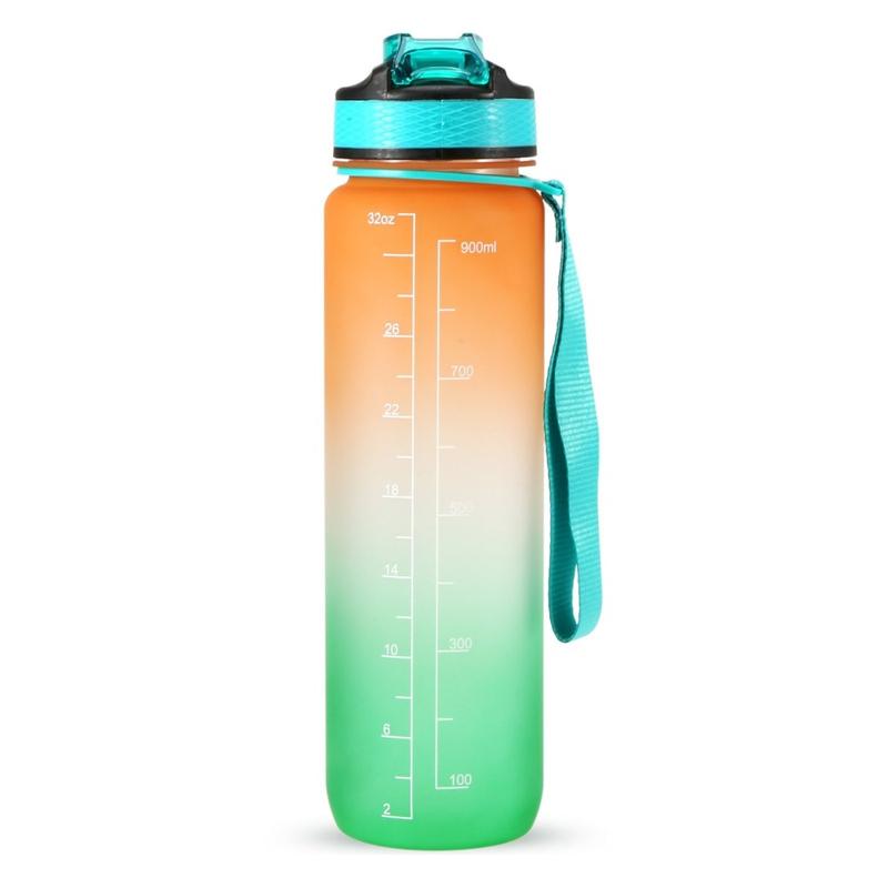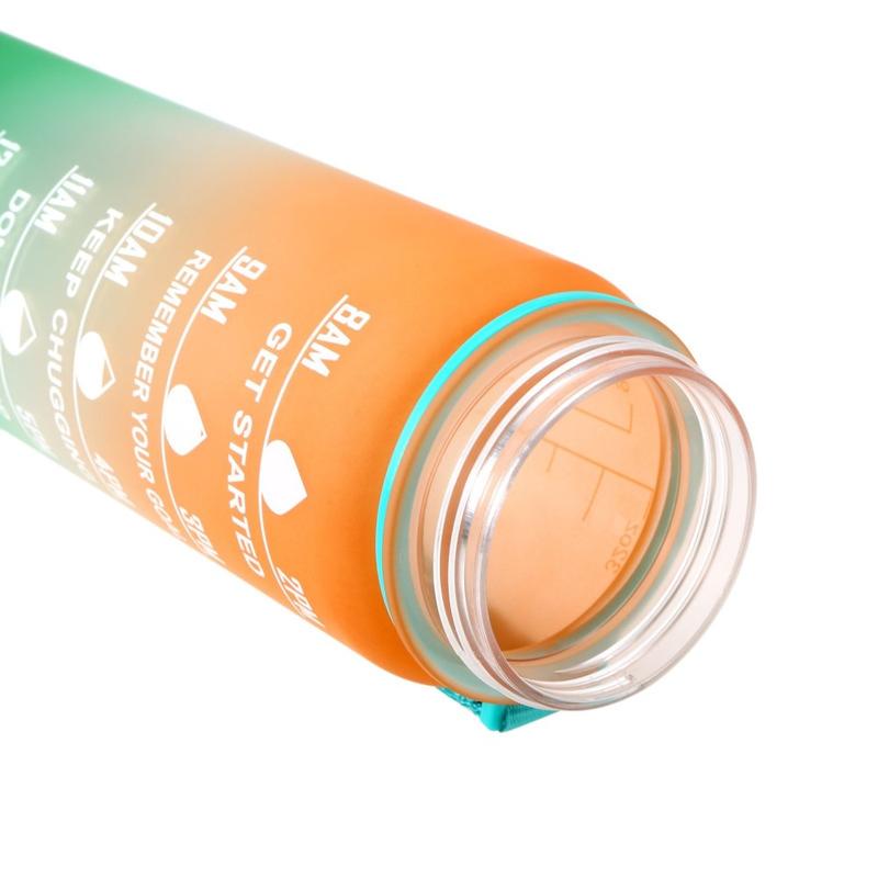 Sportovní láhev na vodu o objemu 1 l s časomírou Džbán na vodu Nepropustná konvice na pití pro kancelář, školu, kempování (BPA Free) - oranžová/zelená