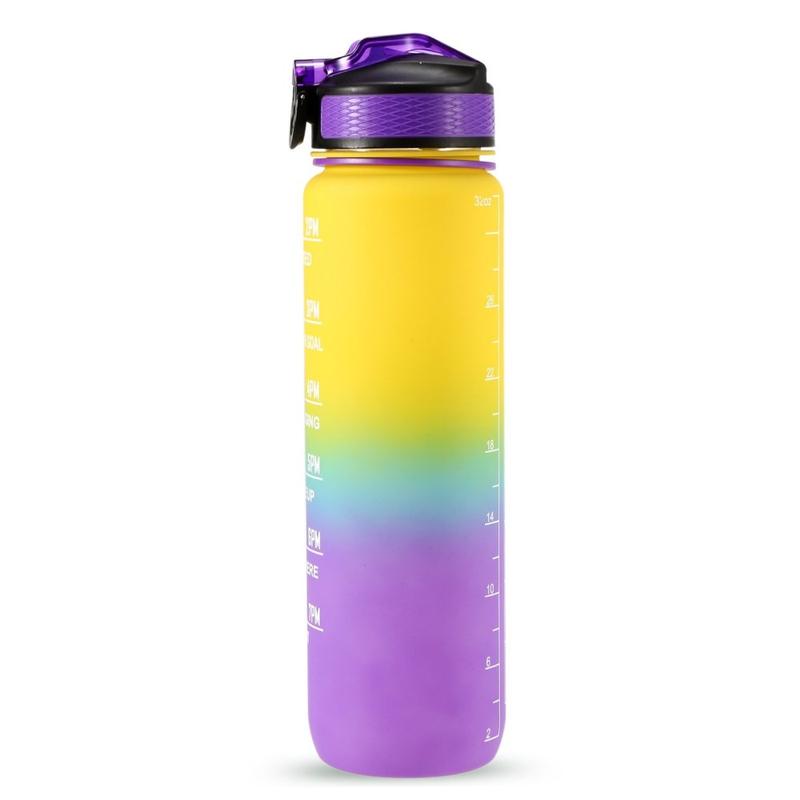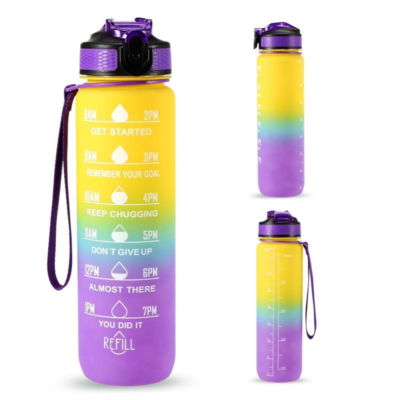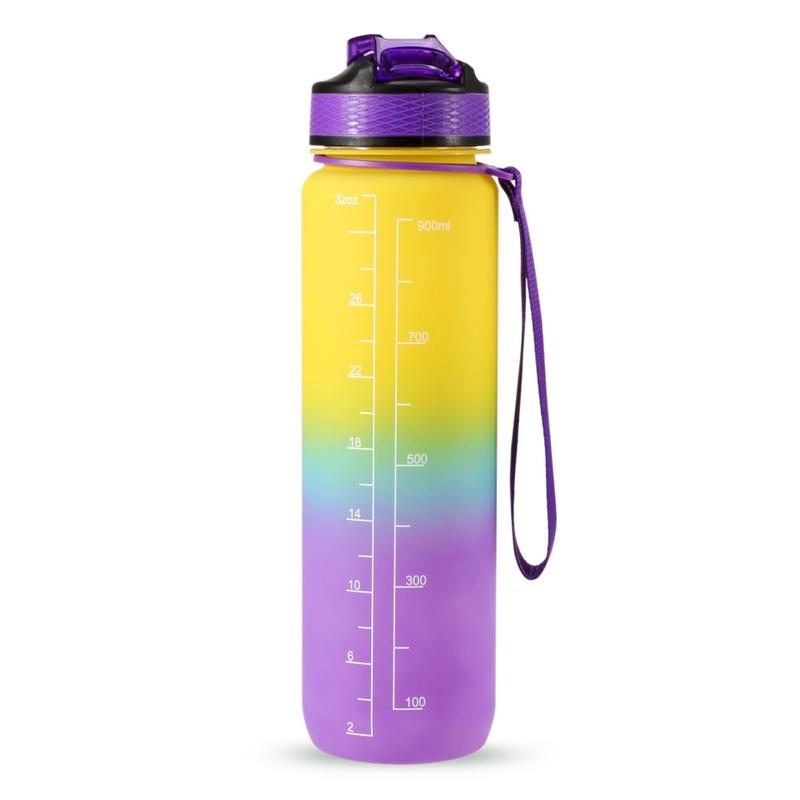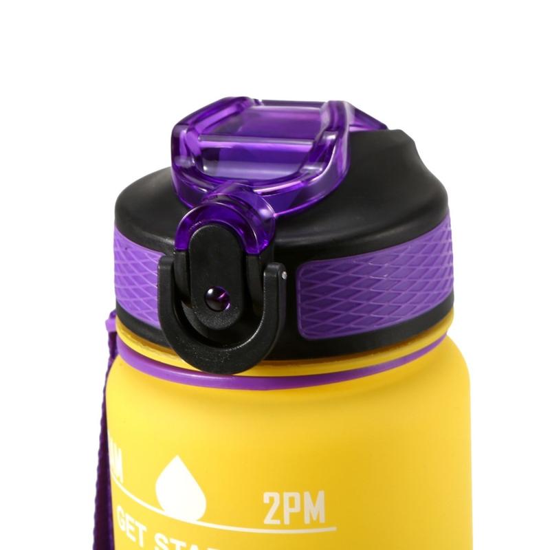Sportovní láhev na vodu o objemu 1 l s časomírou Džbán na vodu Nepropustná konvice na pití pro kancelář, školu a kempování (BPA Free) - žlutá/fialová