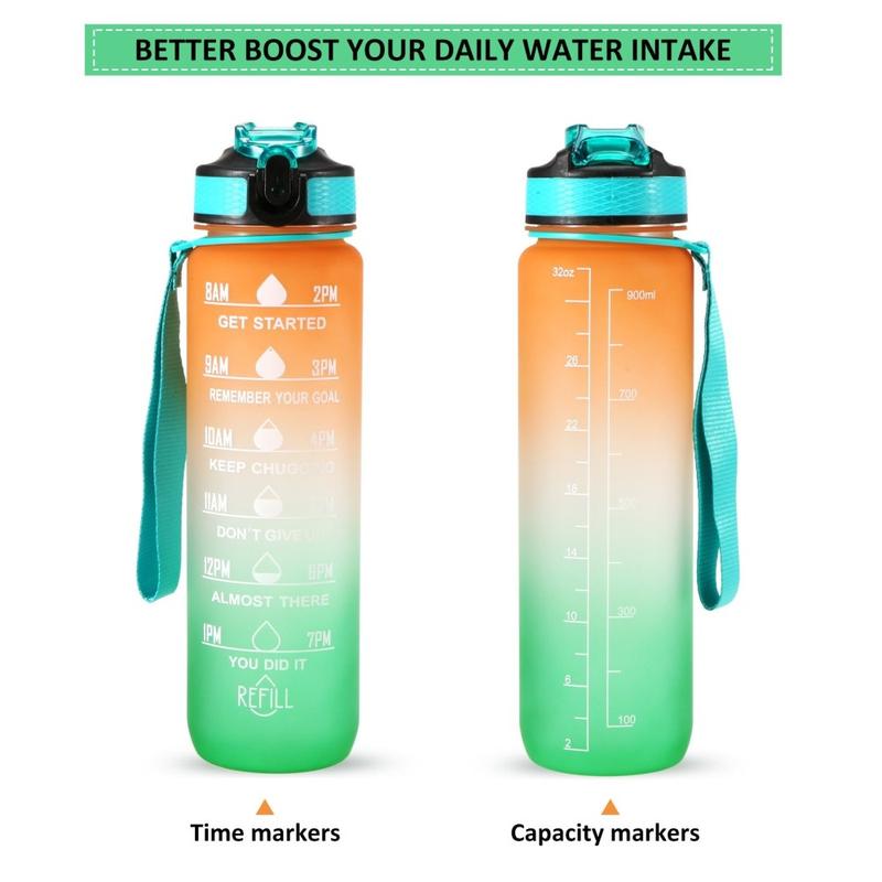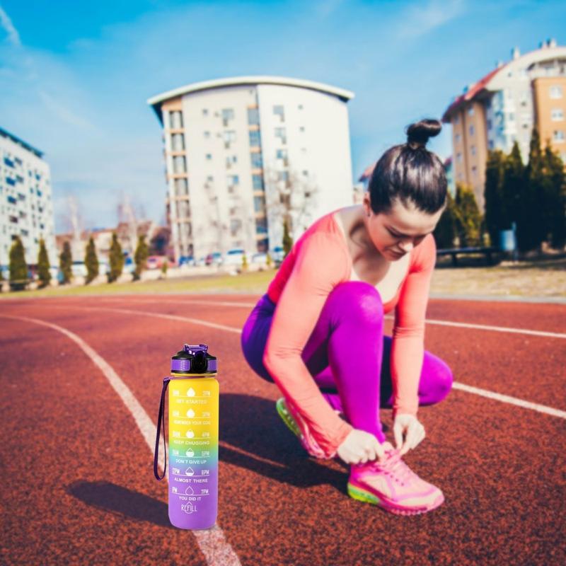 Tato láhev na vodu o objemu 1 l je opatřena ukazatelem času a inspirativními citáty, které vám pomohou udržet si motivaci k pití dostatečného množství vody po celý den. Ideální na tréninky, běh, turistiku, cyklistiku, jízdu na kole, kempování, jógu nebo jiné sporty doma, v posilovně, v kanceláři nebo v přírodě.