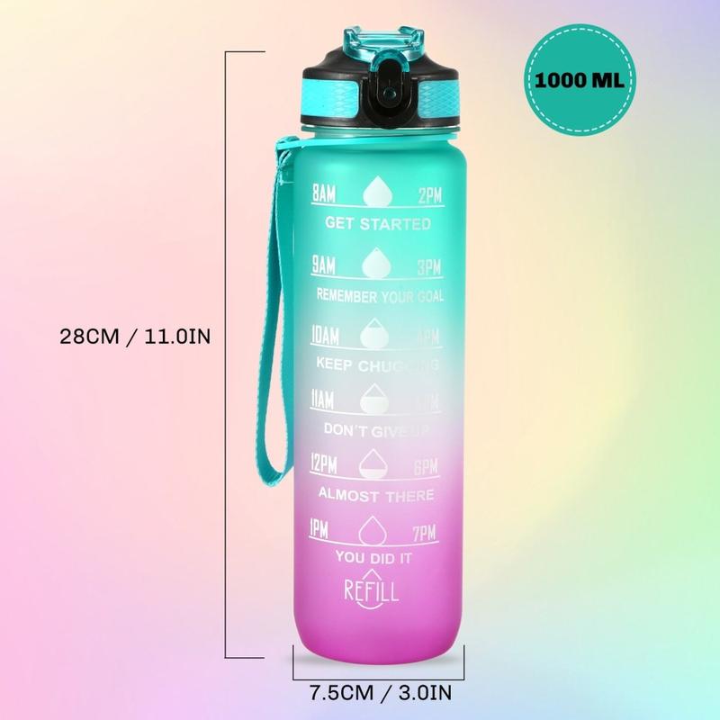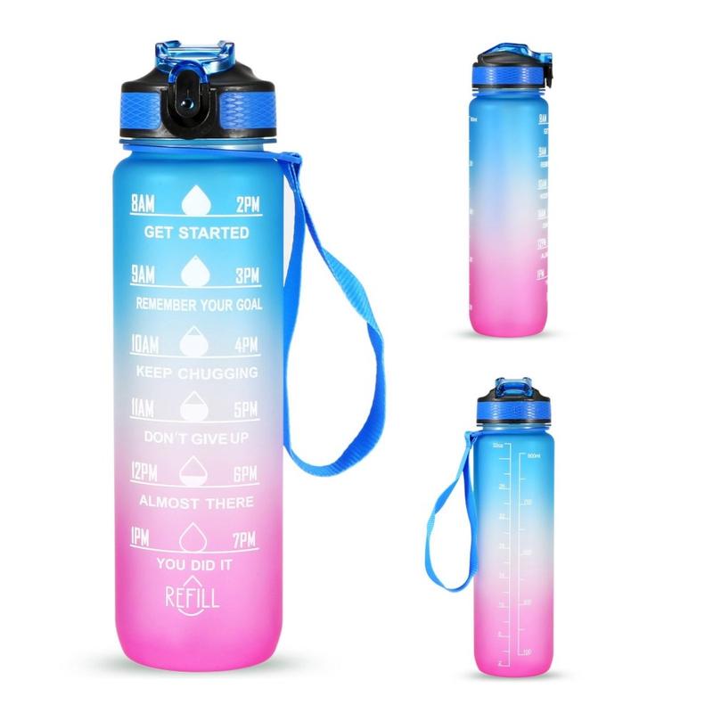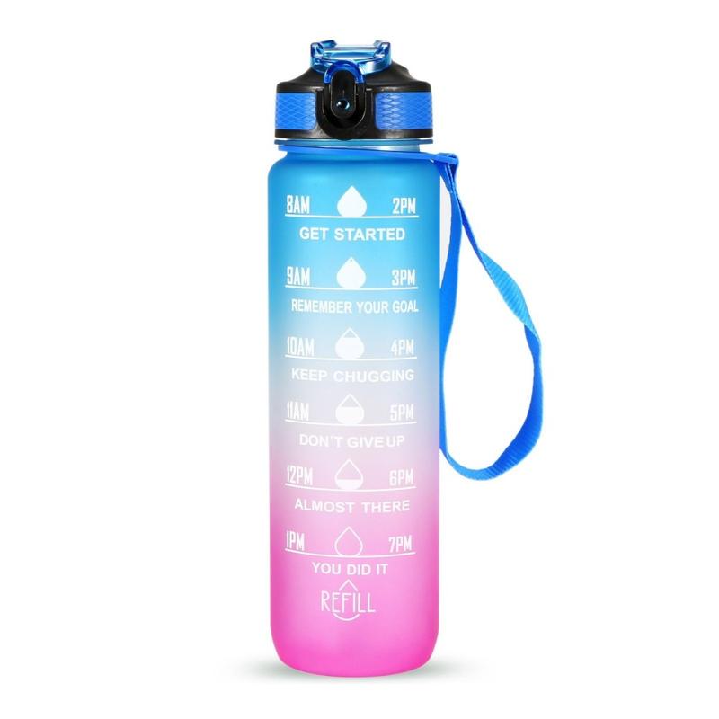 Tato láhev na vodu o objemu 1 l je opatřena ukazatelem času a inspirativními citáty, které vám pomohou udržet si motivaci k pití dostatečného množství vody po celý den. Ideální na tréninky, běh, turistiku, cyklistiku, jízdu na kole, kempování, jógu nebo jiné sporty doma, v posilovně, v kanceláři nebo v přírodě.